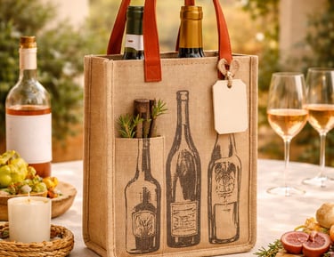 Elegant and durable jute wine bags specially designed to safely carry and present wine bottles.
